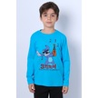 Erkek Çocuk Uzun Kollu Tshirt Karakter Baskılı Bisiklet Yaka E10 Turkuaz