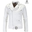 Erkek Deri Ceketler Büyük Beden Motosiklet Deri Montları Beyaz