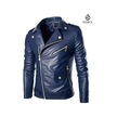 Erkek Deri Ceketler Büyük Beden Motosiklet Deri Montları Koyu Mavi
