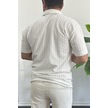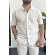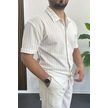 Erkek Dik Çizgili Kısa Kollu Gömlek Krem Edw387 Krem