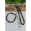 Erkek Doğal Taş Tesbih Ve Bileklik Set Kahverengi Akik 8 Mm Bt055 Kahverengi - Beyaz