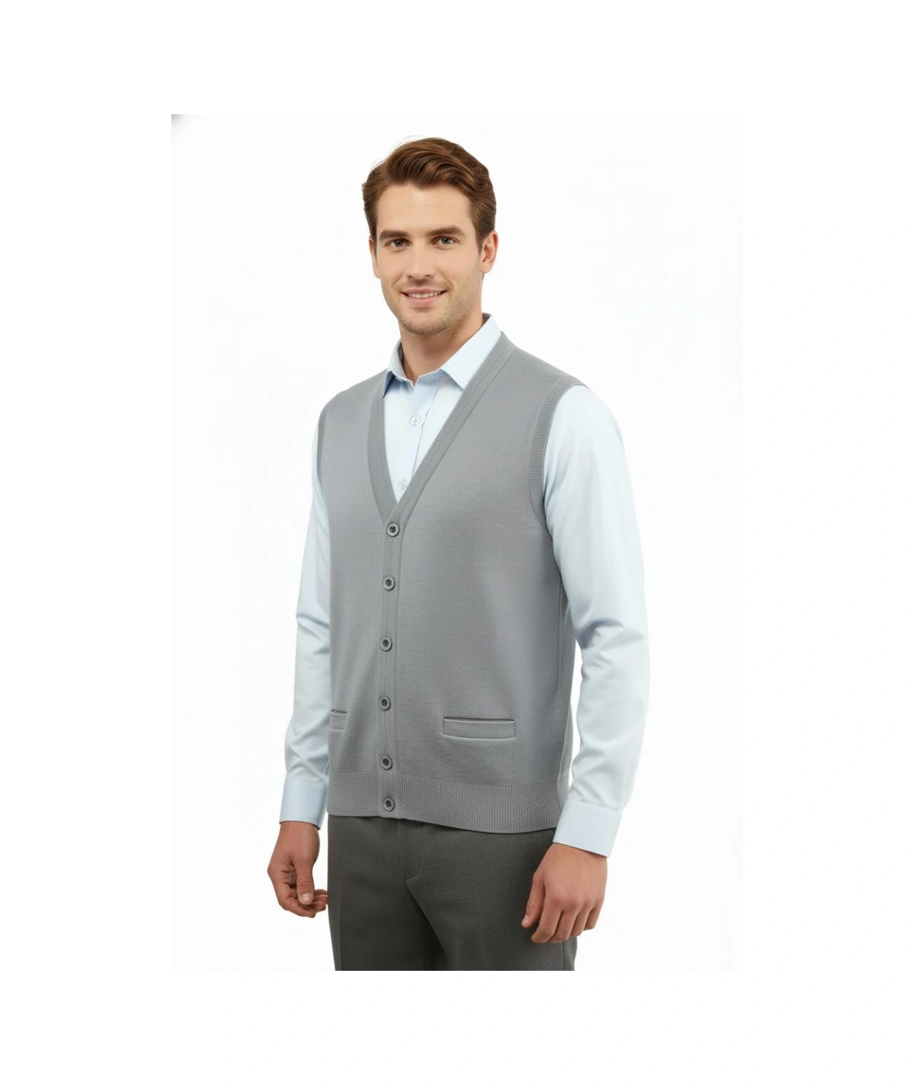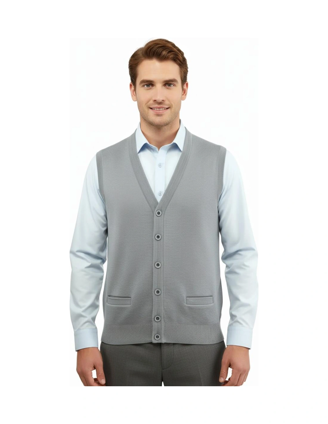 Erkek Düğmeli Yelek Cepli Çelik Örgü Klasik Kalıp 5200l Bgl-st04844 Gri