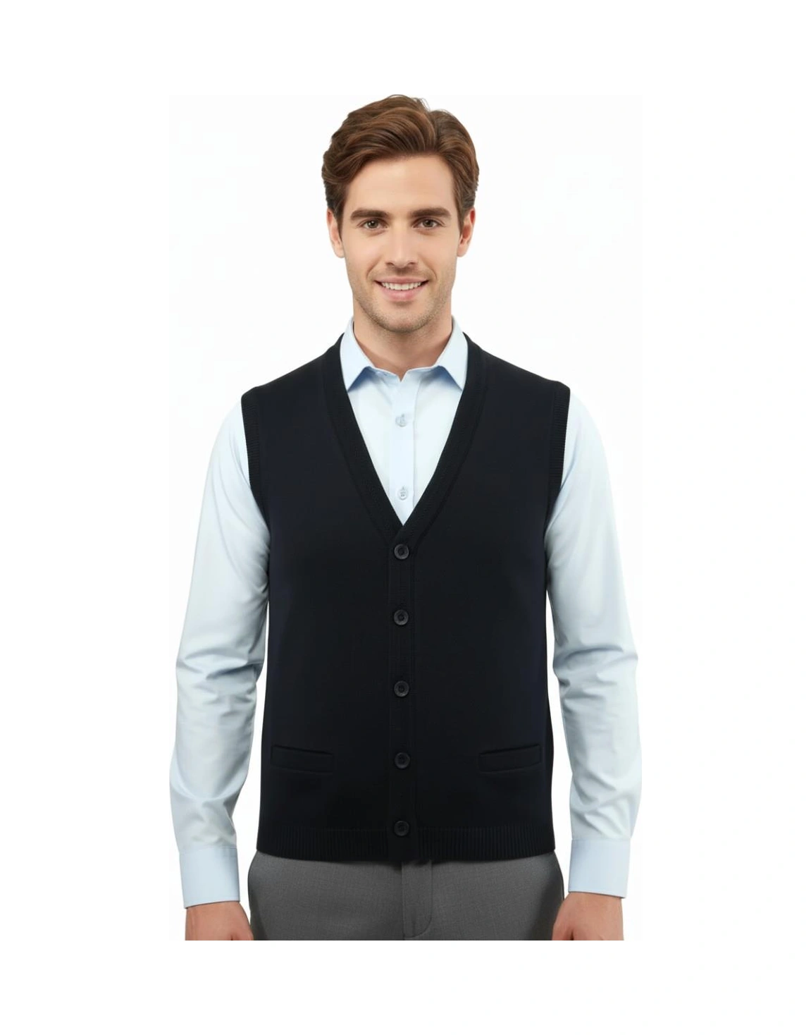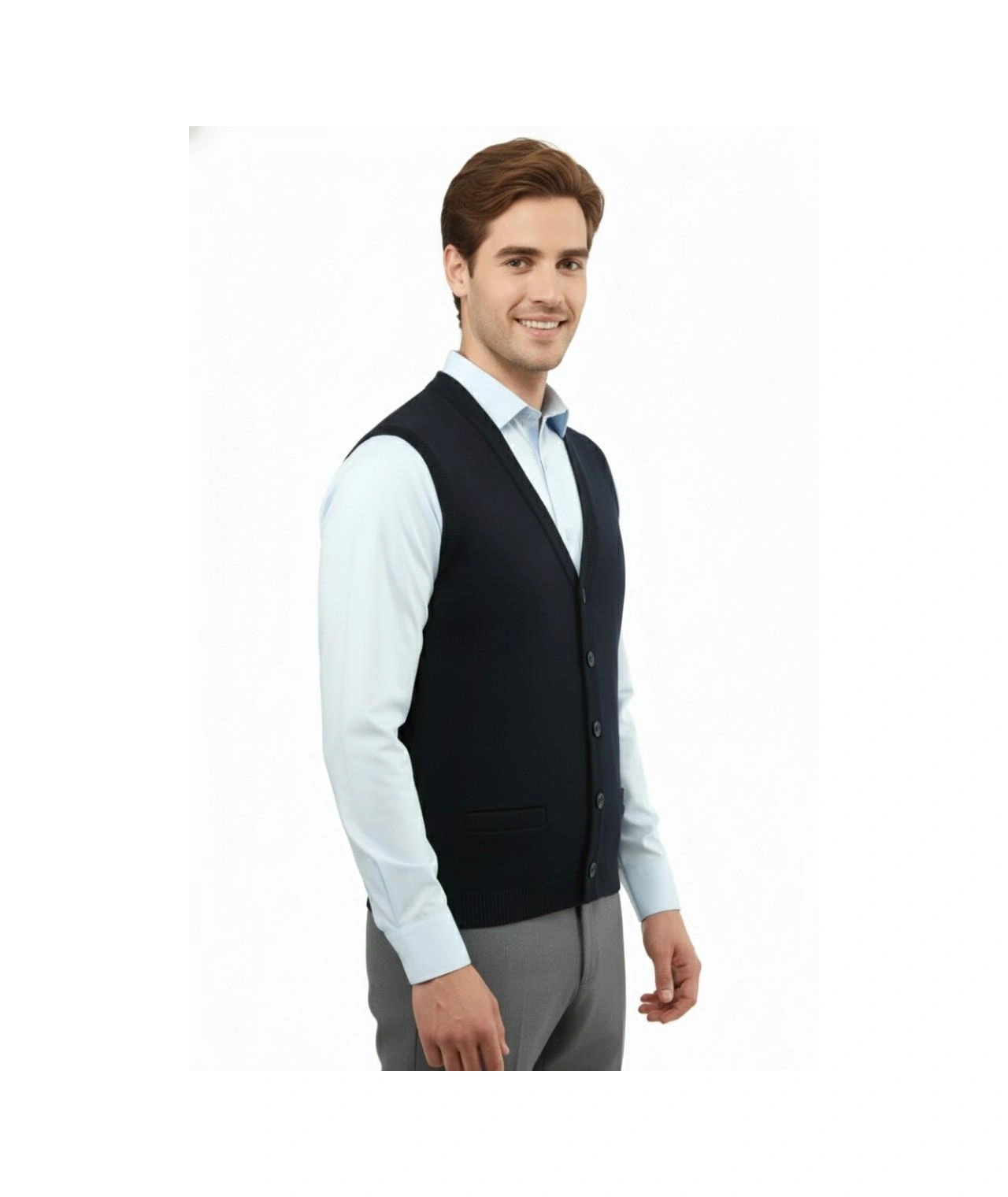 Erkek Düğmeli Yelek Cepli Çelik Örgü Klasik Kalıp 5200l Bgl-st04844 Lacivert