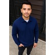 Erkek Fitilli Polar Sweatshirt Düğmesiz Polo Yaka, Oversize Rahat Kalıp, Kalın Polar Kumaş, Kışlık Lacivert