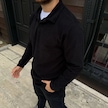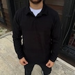 Erkek Fitilli Polar Sweatshirt Düğmesiz Polo Yaka, Oversize Rahat Kalıp, Kalın Polar Kumaş, Kışlık Siyah