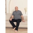 Erkek Geniş Kalıp %100 Pamuk Kısa Kol Cepli Büyük Beden Pijama Takımı Antrasit