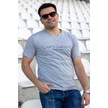 Erkek Gri El Yazısı İmza Baskı Normal Kesim Bisiklet Yaka Erkek T-shirt 22etsheyaz 001