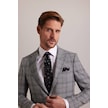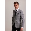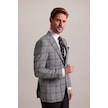 Erkek Gri Kışlık Yünlü Regular Fit Ekose Desenli Tek Ceket 001