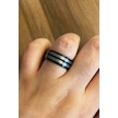 Erkek Gümüş İkili Çizgi Model Siyah Renk Tungsten Yüzük Siyah - Gümüş