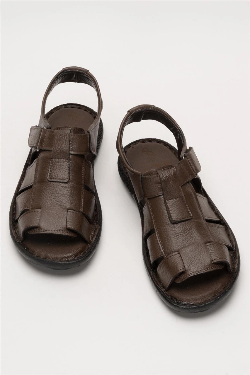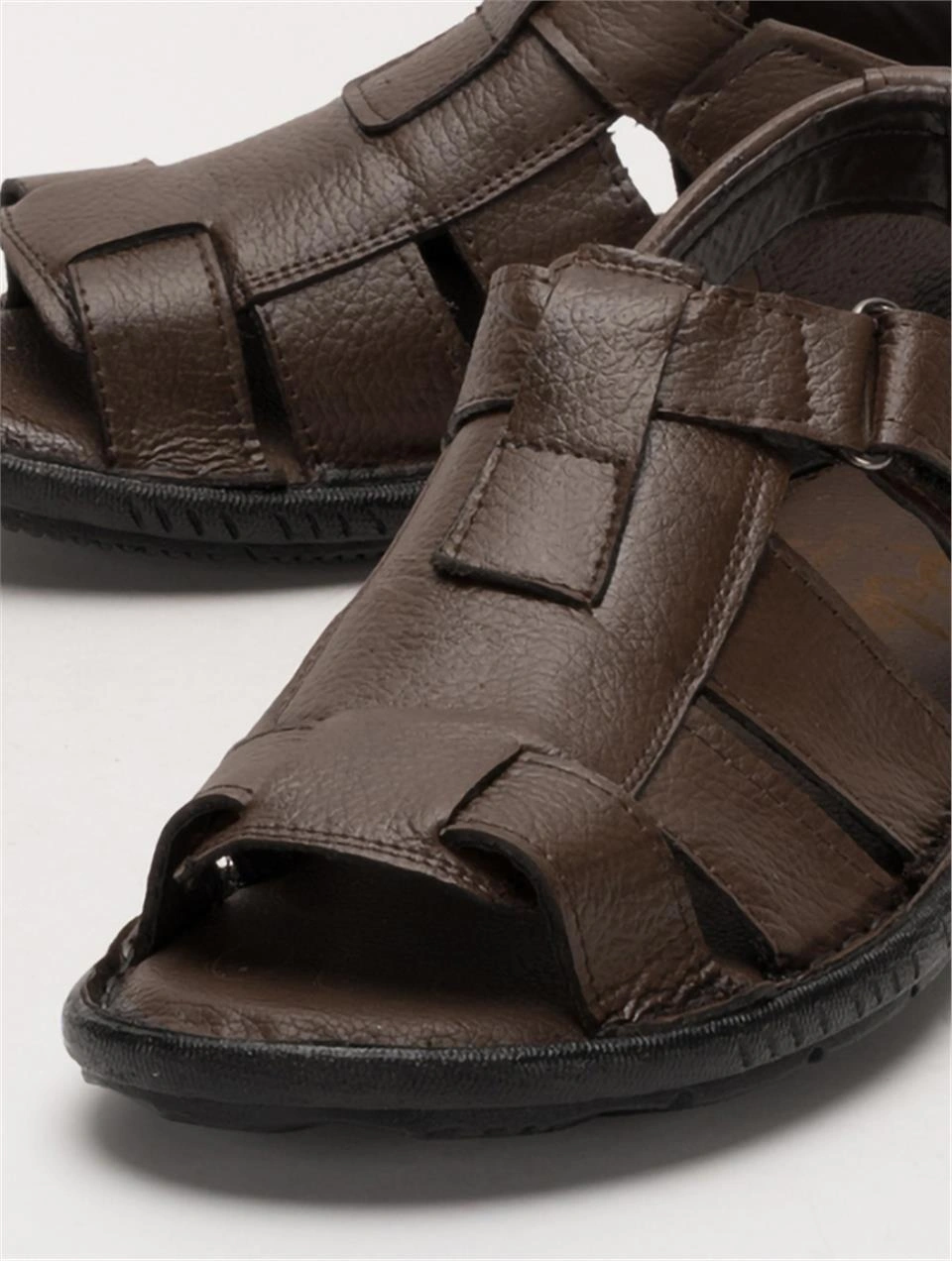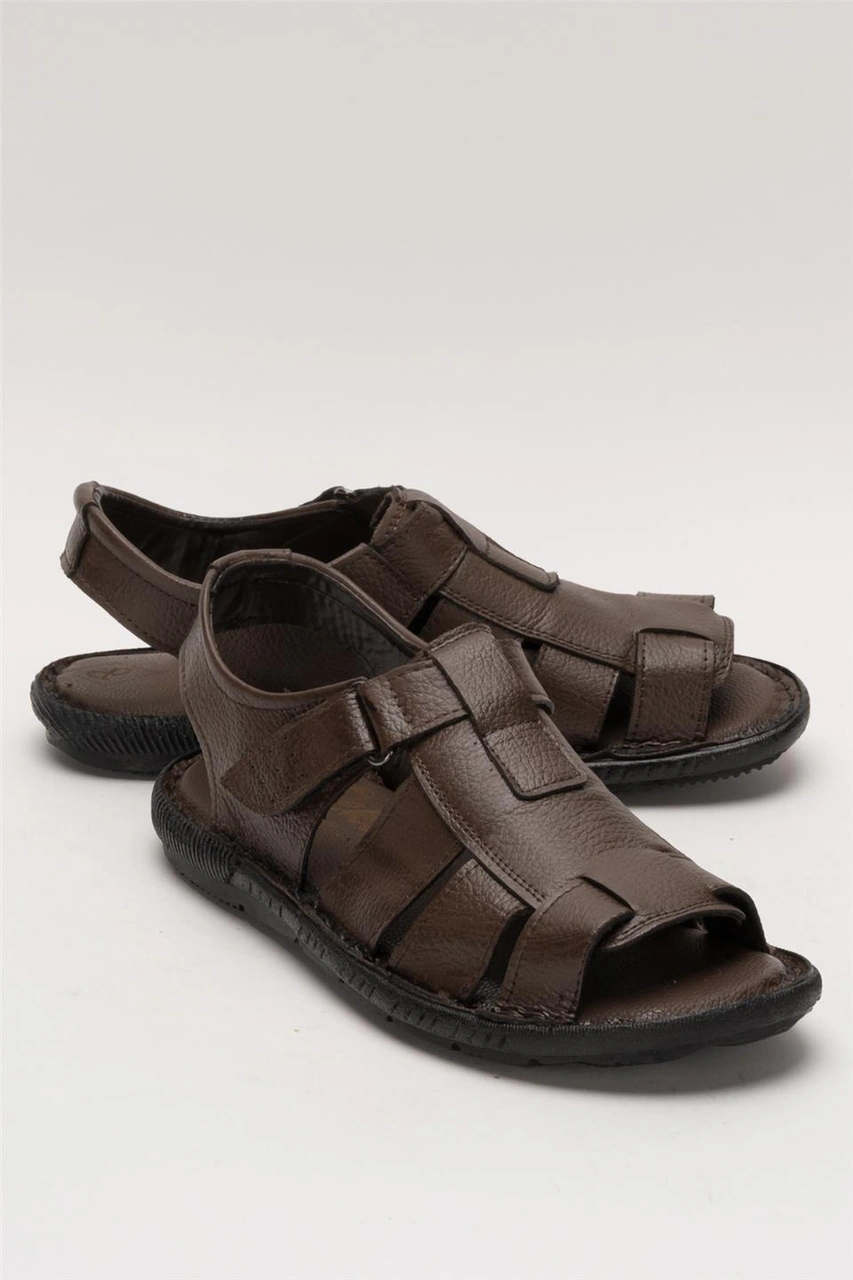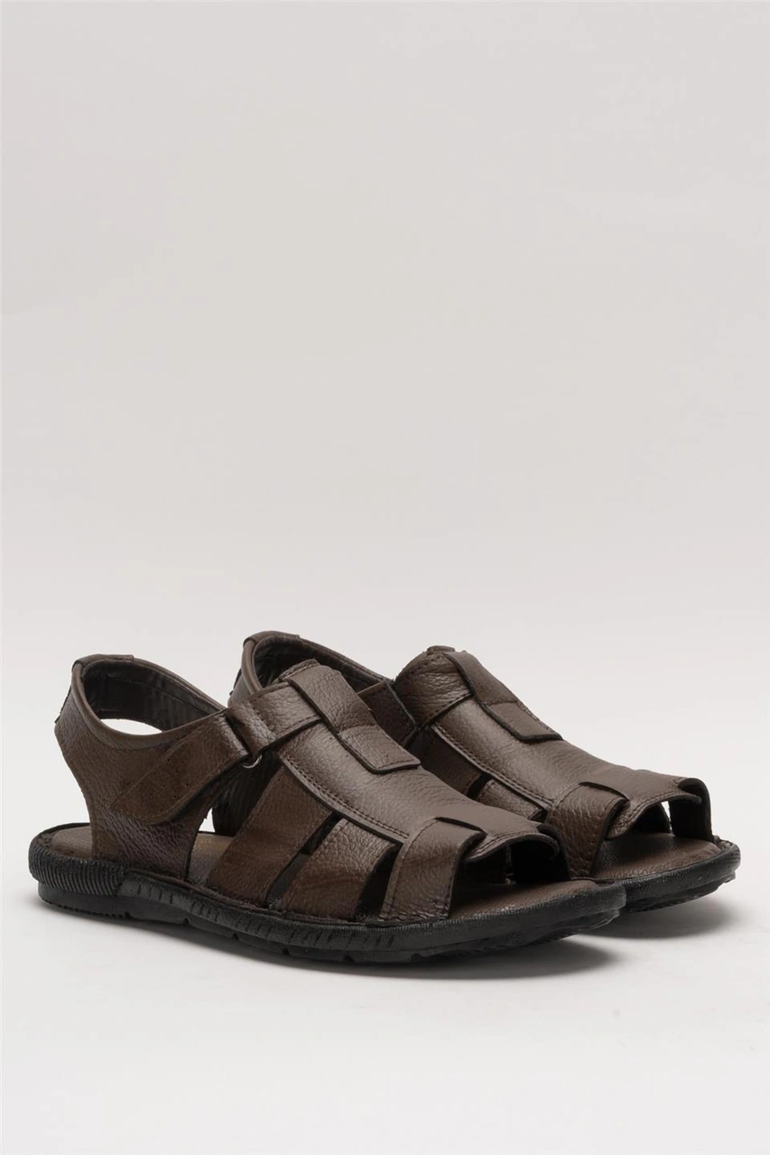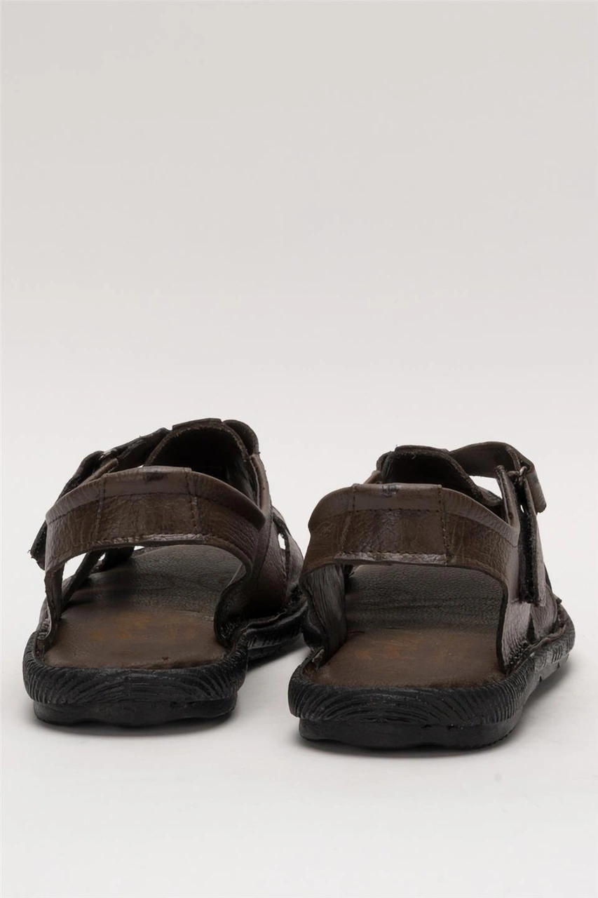 Erkek Hakiki Deri Cırtlı Sandalet Kahverengi - Siyah Kahverengi - Siyah