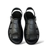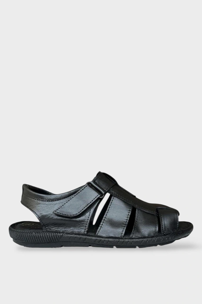 Erkek Hakiki Deri Cırtlı Sandalet Siyah Siyah