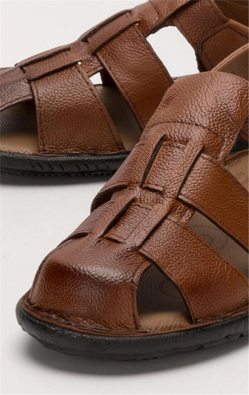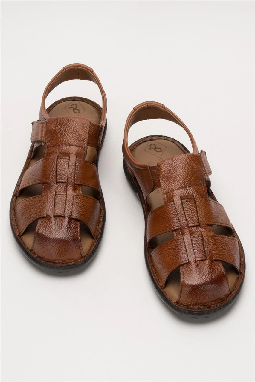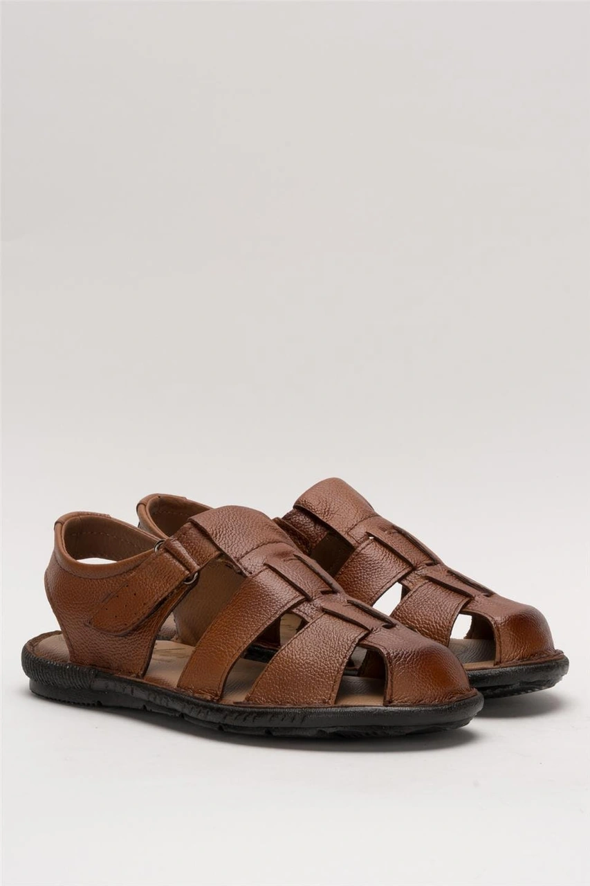 Erkek Hakiki Deri Yazlık Hafif Günlük Ayakkabı Sandalet Taba Taba