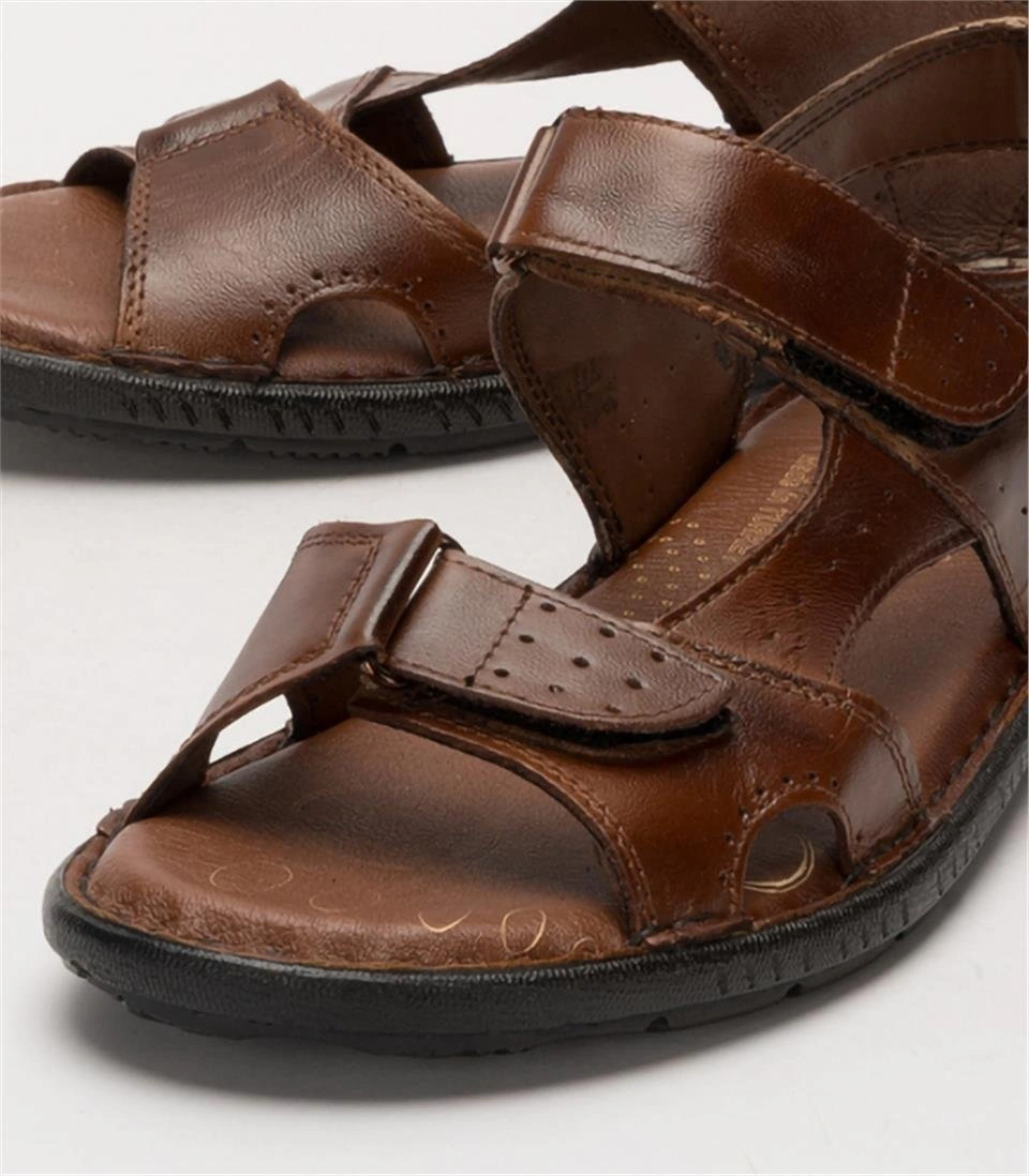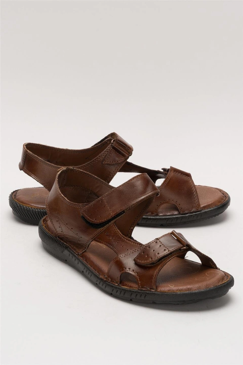 Erkek İçi Dışı Hakiki Deri Ortopetik Yazlık Esnek Ve Çok Hafif Günlük Ayakkabı Sandalet Taba Taba