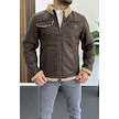 Erkek İçi Kürklü Suni Pul Deri Mont Kahverengi Edw120-kahverengi Kahverengi