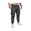 Erkek İlkbahar Ve Sonbahar Uzun Pantolon Moda Günlük İpli Elastik Pantolon Düz Renk Cepli Pantolon Koyu Gri