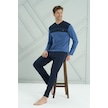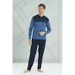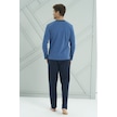 Erkek Interlok Penye Uzun Kol Pijama Takımı 2213 Saks Saks Mavi