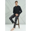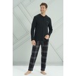 Erkek Interlok Penye Uzun Kol Pijama Takımı 2233 Siyah Siyah