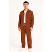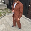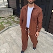 Erkek Kadife Oversize Takım - Gömlek Ve Pantolon İkili Set Füme Corduroy Şıklığı, Rahat Ve Zarif Duruş Yumuşak Dokulu Kadife Kumaş, Düğmeli Gömlek Üst Ve Lastikli Pantolon Alt Parça İle Gün Boyu Konfor- Kiremit Çok Renkli