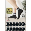 Erkek Kadın 12 Çift Çizgili Kolej Tenis Çorabı Pamuklu Terletmez Çorap Siyah