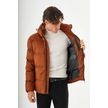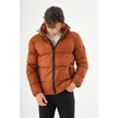 Erkek Kapüşonlu Fermuarlı Cepli Kışlık Şişme Kısa Mont KİREMİT