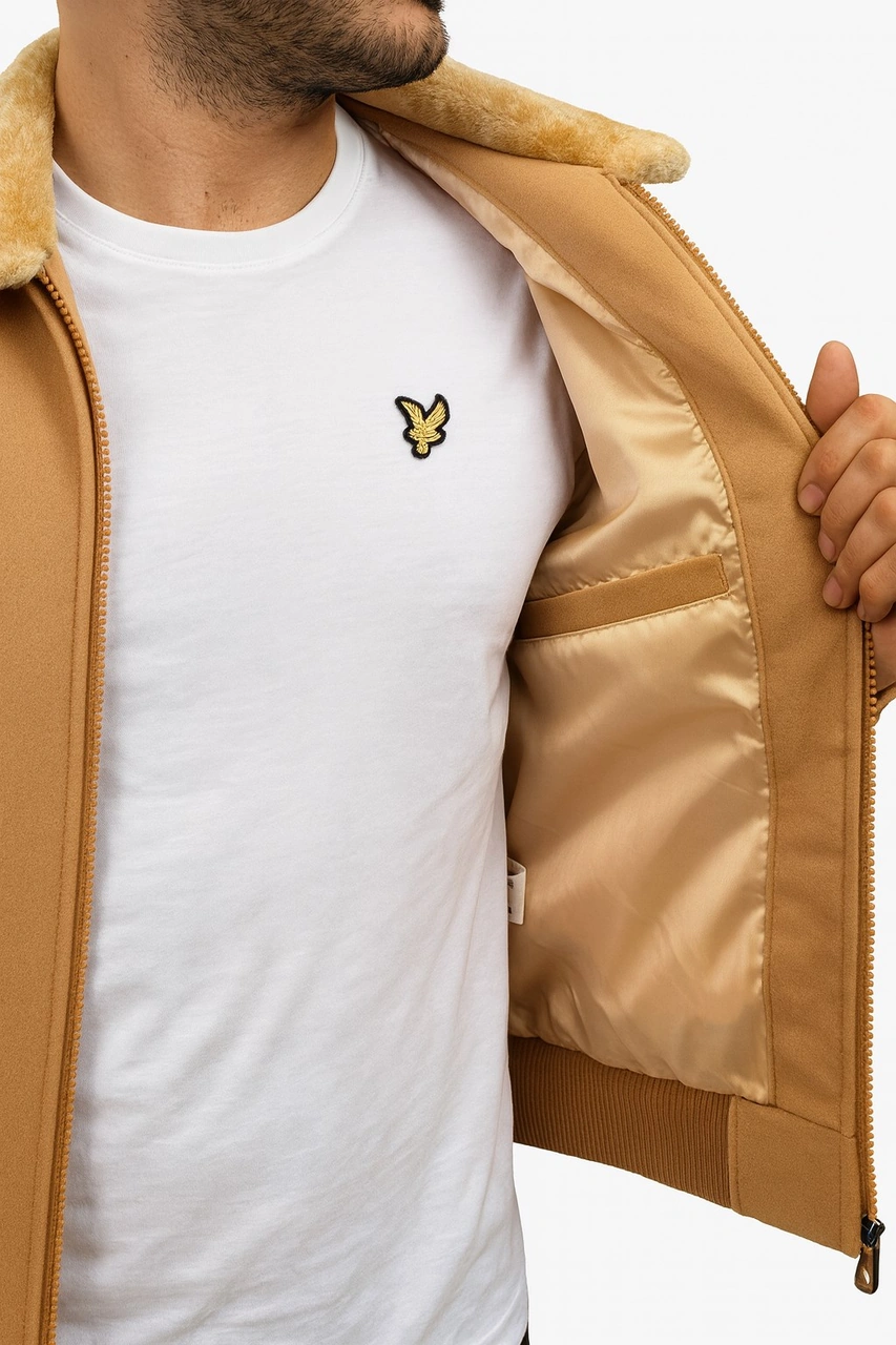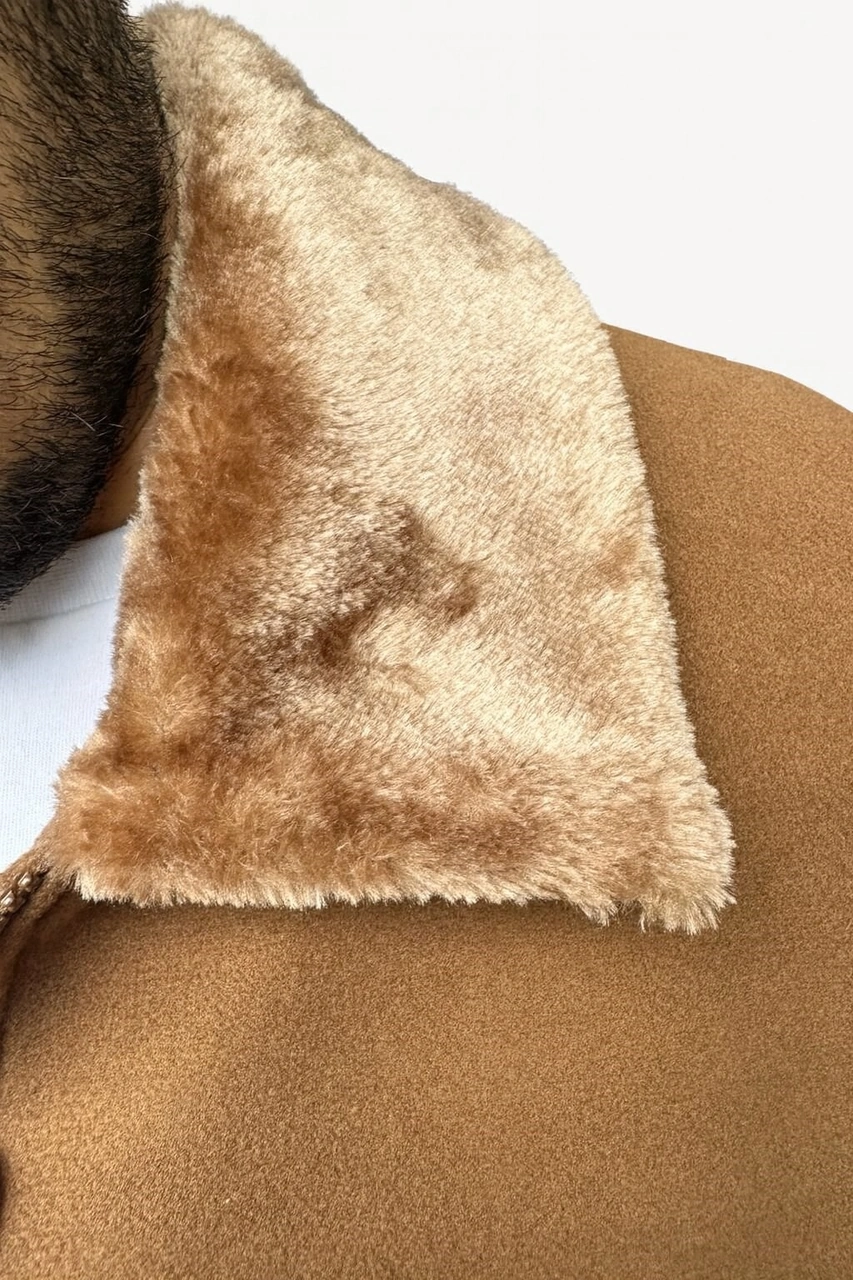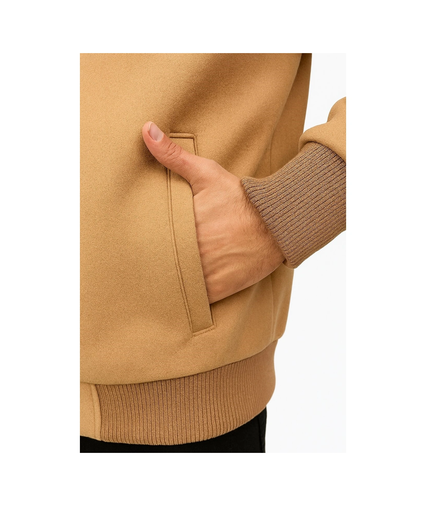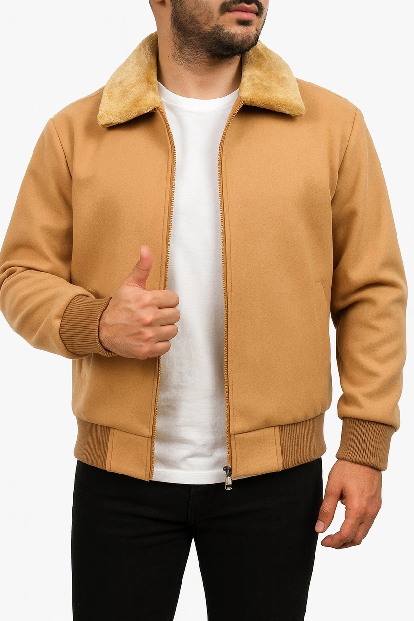 Erkek Kaşe Mont Kürklü Yaka Astarlı Fermuarlı Kışlık Ceket Plus Scorpion Açık Bej