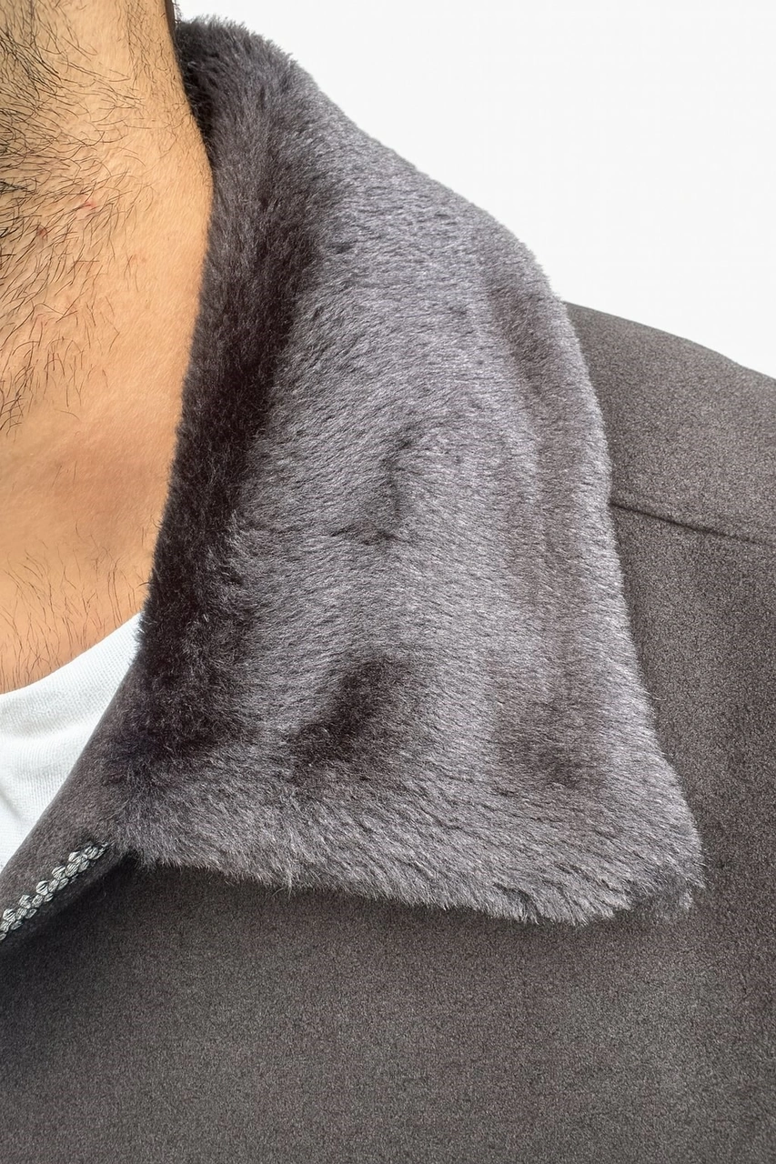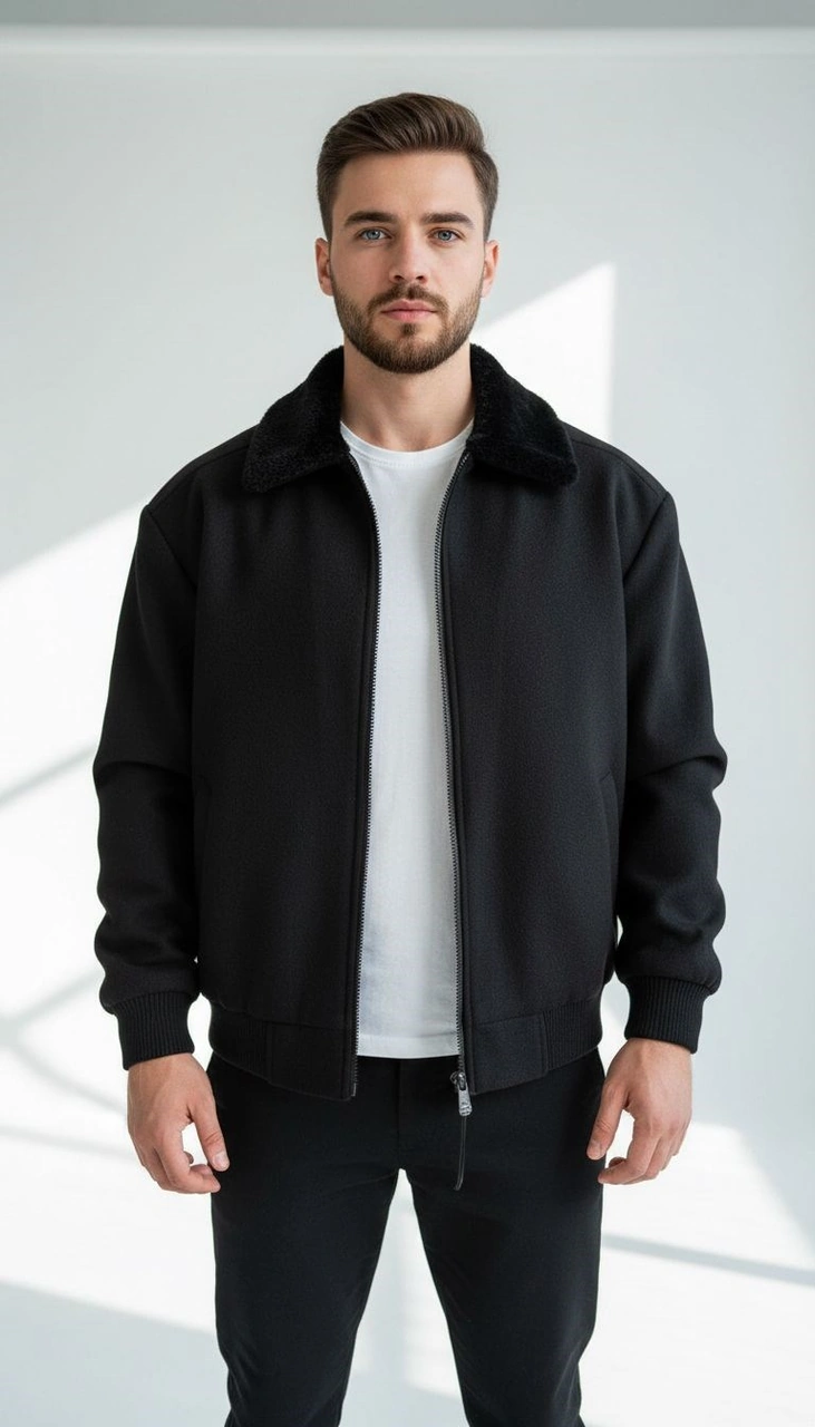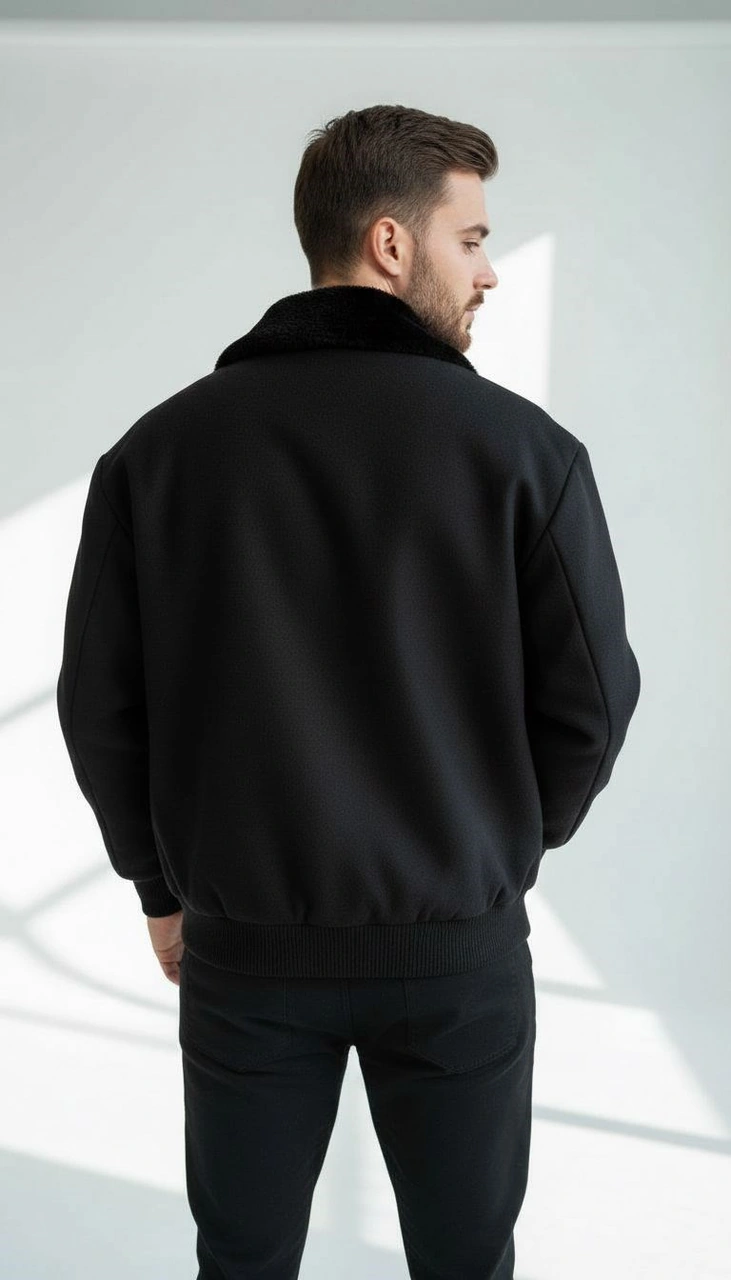Erkek Kaşe Mont Kürklü Yaka Astarlı Fermuarlı Kışlık Ceket Plus Scorpion Siyah