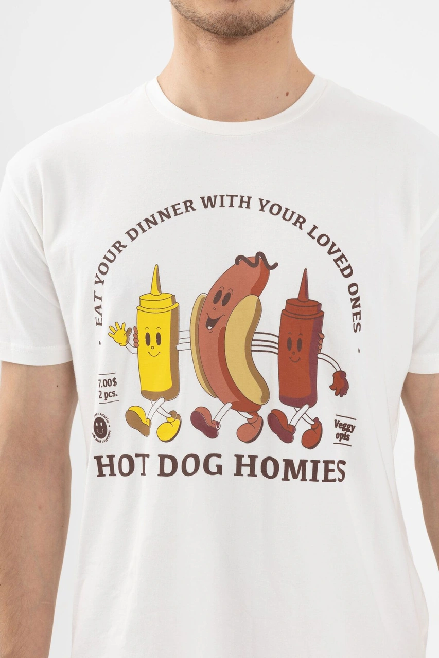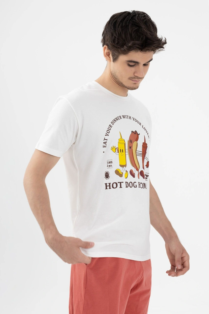 Erkek Kısa Kollu Pamuklu Sosis Baskılı Şortlu Takım Ko60102 Kiremit