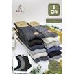 Erkek Kışlık 6 Çift Lambswool Yün Çorap Termal Etkili Ebruli Asorti