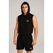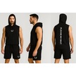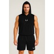 Erkek Lette Kapüşonlu Armalı Esnek Kolsuz Siyah Şortlu Takım Siyah