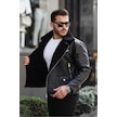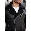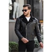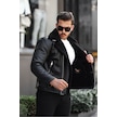 Erkek Napa Deri Çapraz Fermuarlı İçi Full Kürklü Yüksek Kalite Slim Fit Siyah Mont & Ceket Siyah