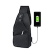 Erkek Omuz Çantası, Usb Şarj Portu Ve Kulaklık Portu Olan Siyah Göğüs Çantası, Unisex Seyahat Sırt Çantası Qd