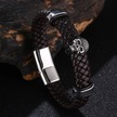 Erkek Örgülü Deri Kurukafa Bileklik Paslanmaz Çelik Erkek Bilezikleri Parti Takıları Hediye Punk Bileklik Kahverengi
