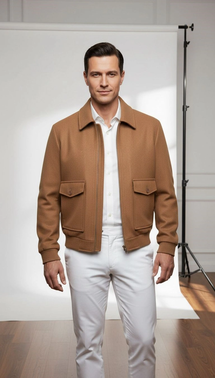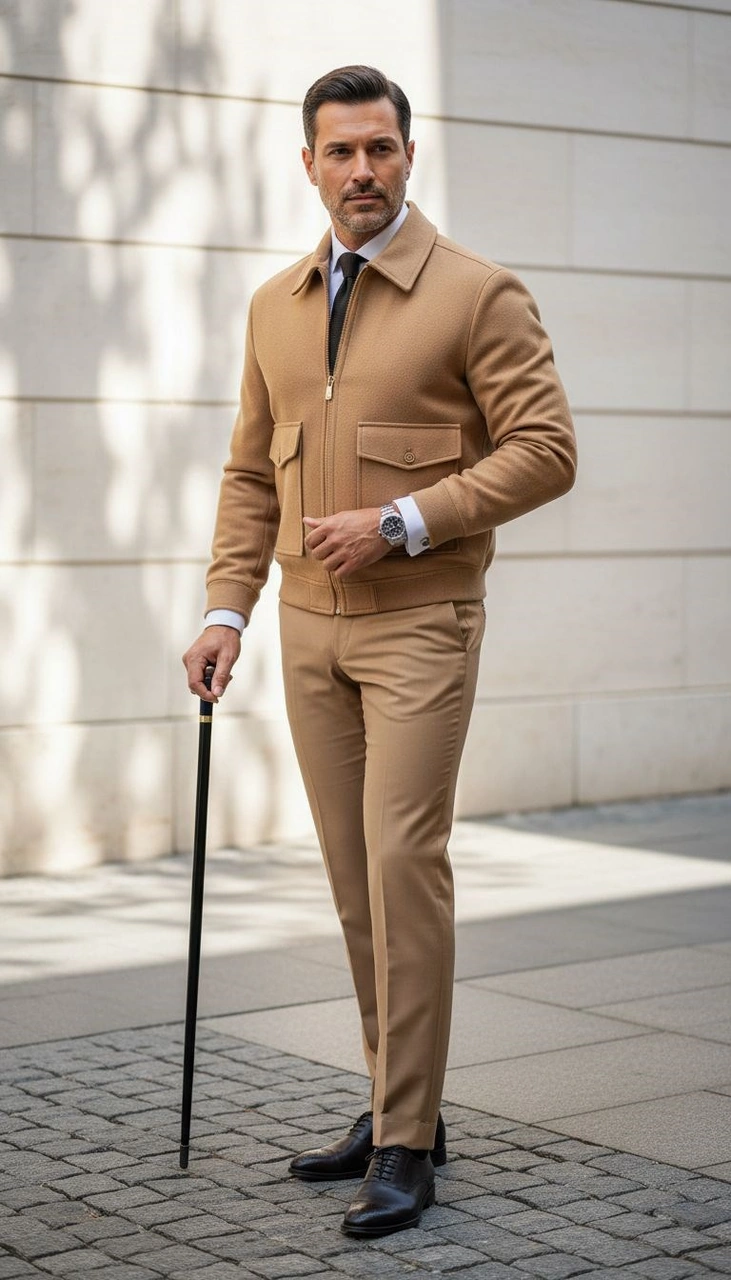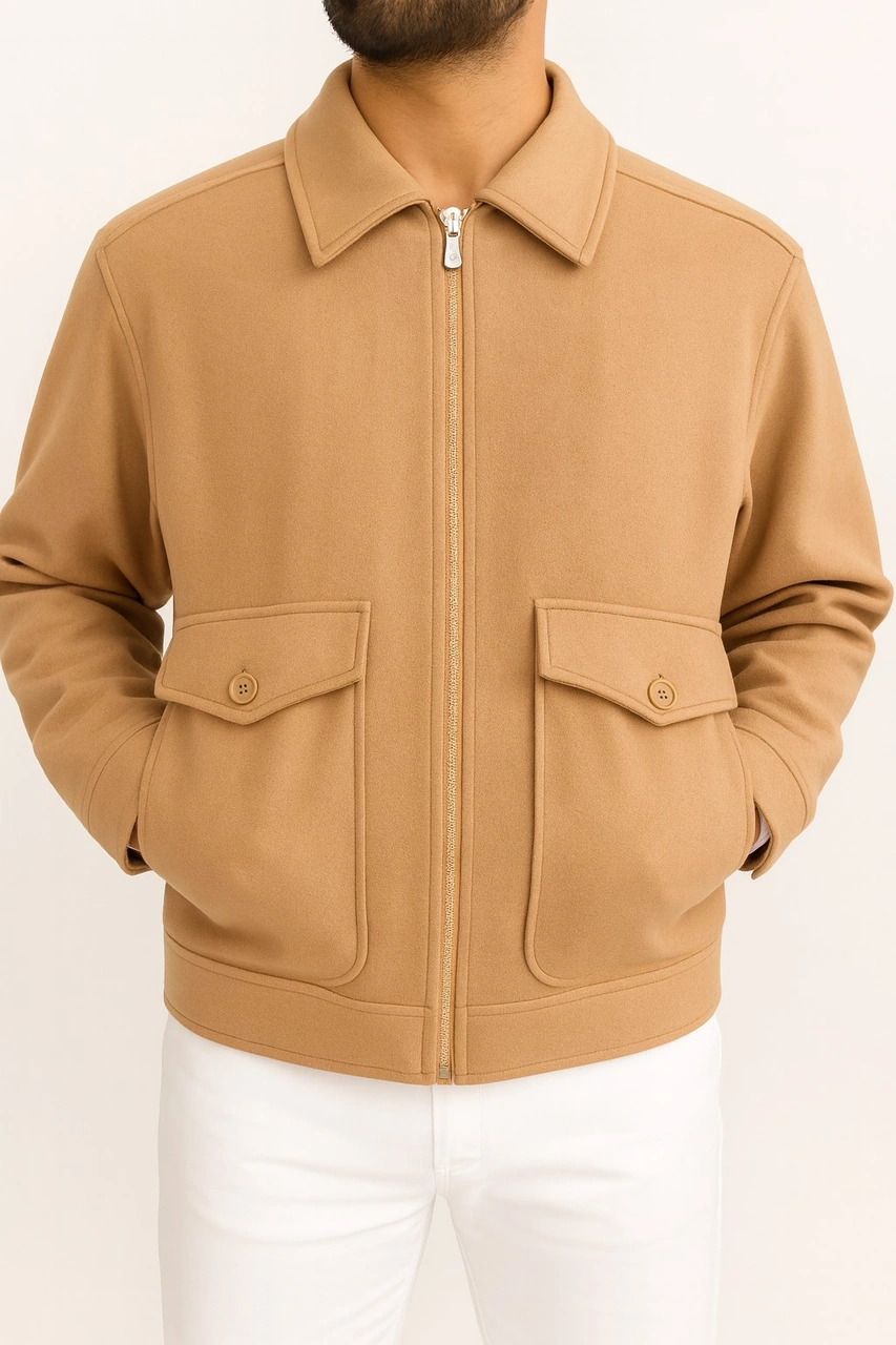 Deepsea Erkek Bej Dar Kesim Likralı Fermuarlı Süet Kumaş Ceket İnce Mont 2504334 False Bej