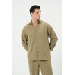 Erkek Oversize Keten Uzun Kol Dört Gömlek Haki