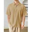 Erkek Oversize Polo Yaka Waffle T-shirt Poloyaka-fermuarlı Bej