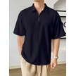 Erkek Oversize Polo Yaka Waffle T-shirt Poloyaka-fermuarlı Lacivert
