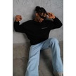 Erkek Oversize Sweatshirt Siyah Renk Ön Ve Sırt Baskılı, Üç İplik İçi Pamuklu Kumaş, Rahat Kalıp Siyah