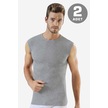 Erkek Pamuklu Gri Tişört Sıfır Kol Sıfır Yaka Kolsuz Atlet 2'li Paket Gri