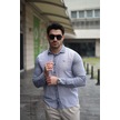Erkek Pamuklu Keten Kumaş Gömlek Gri
