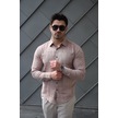 Erkek Pamuklu Keten Kumaş Gömlek Kahve