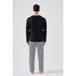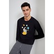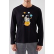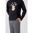 Erkek Pamuklu Uzun Kollu Üst Astronot Baskılı Alt Çizgili Pijama Takımı Ke30106 Siyah - Beyaz