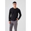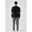 Erkek Pamuklu Uzun Kollu Yamalı Ekose Desenli Pijama Takımı Ko60104 Siyah - Kırmızı