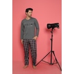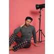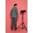 Erkek Penye Pamuk Regular Kalıp Sıfır Yaka Pijama Takımı A803123-füme Füme