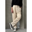 Erkek Pileli Baggy Kalıp Kadife Pantolon Krem