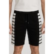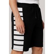 Erkek Siyah Beyaz Çizgili Spor Bermuda Şort Bağcıklı Cepli Siyah