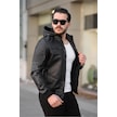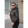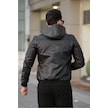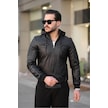 Erkek Siyah Dar Kesim Kapüşonlu Bel Lastikli Ribanalı Deri Ceket & Mont Siyah