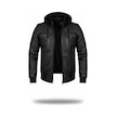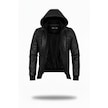 Erkek Siyah Dar Kesim Kapüşonlu Bel Lastikli Ribanalı Deri Ceket & Mont Siyah