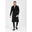 Erkek Siyah Dar Kesim Uzun Kaşe Gömlek Yaka Palto & Kaban Siyah