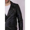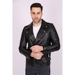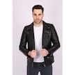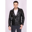 Erkek Siyah Hakiki Deri Yakalı Asimetrik Fermuarlı Spor Mont