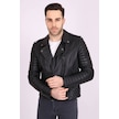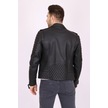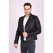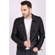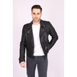 Erkek Siyah Hakiki Deri Yakalı Baklava Desenli Apoletli Spor Mont